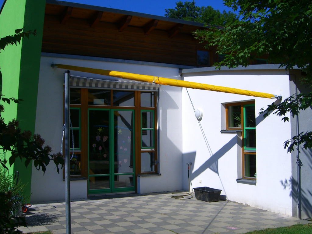 Die Möglichkeiten der Gestaltung sind beim Mini Vario sehr flexibel. Egal ob einseitiger Auszug oder beidseitig, auch die Länge der Welle und der Auszüge sind wählbar. Somit findet sich für jede Situation eine optimale Lösung. Als Sonnenschutzgewebe wird auschliesslich der hochwertige Markisenstoff Soltis 86 verwendet. Das Mini Vario lässt sich bequem mit wenigen Handgriffen aus- und einrollen. Besonders geeignet für den Kindergarten.